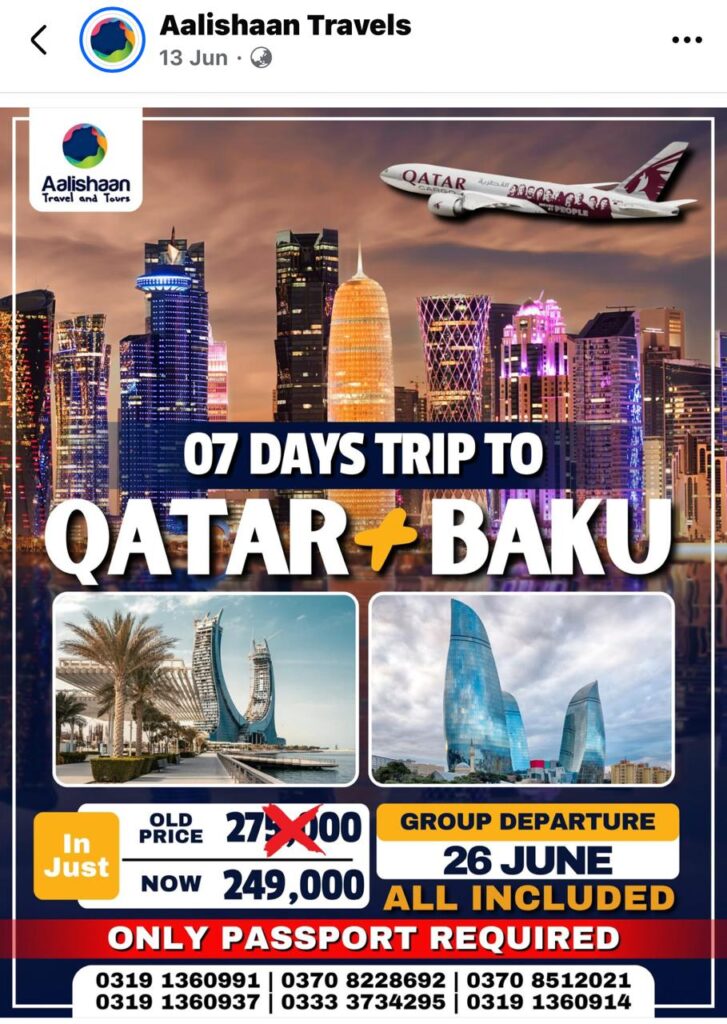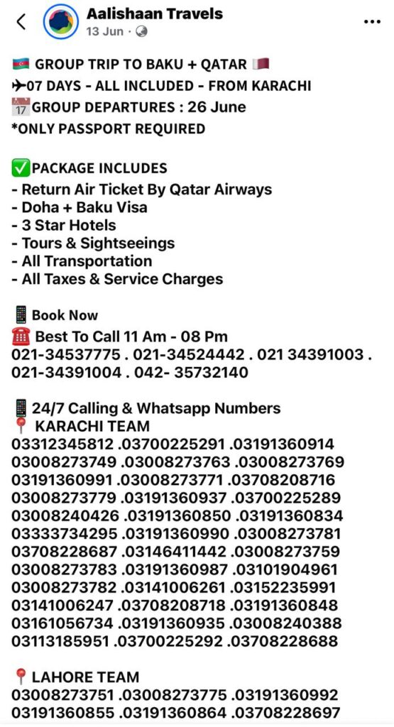 اور ایف ائی اے (FIA) کو چاہیے کہ ایسے ٹریول ایجنسیوں کے خلاف کاروائی کرے